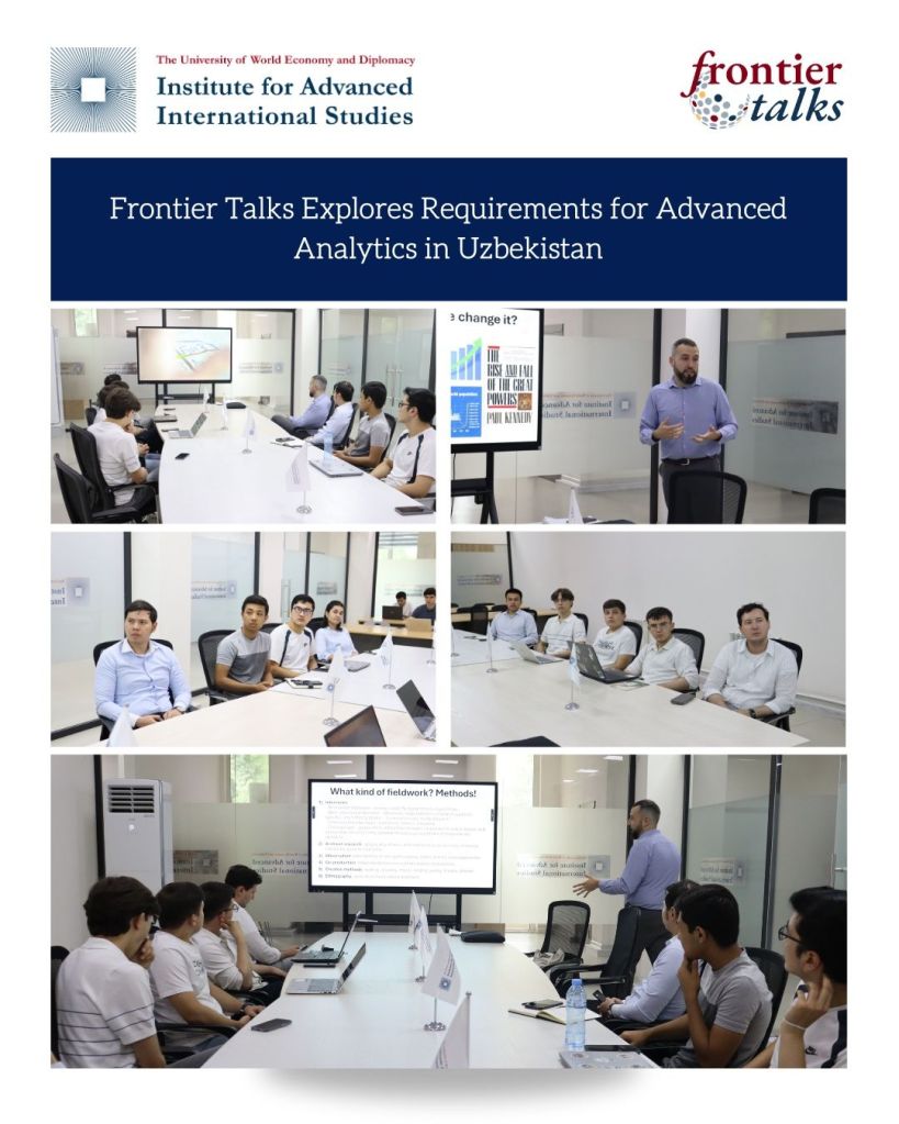 Research methods lecture at the Institute for Advanced and International Studies, University of World Economy and Diplomacy, Tashkent, Uzbekistan, June 2025.